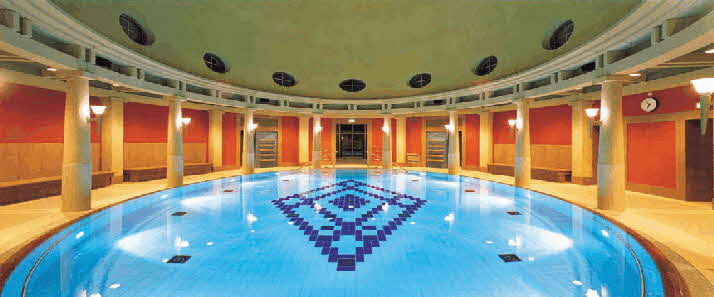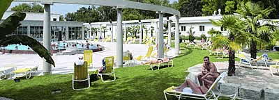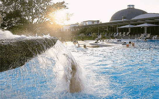 Im Thermalbad erwartet Sie ein volles Verwöhnprogramm. Mehrere Außenbecken, Therapiebecken, Entspannungsbäder, Musikhalle, und verschieden temperierte Schwimmbecken lassen keine Wünsche offen.